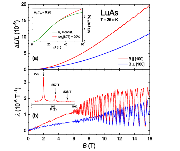 Niewysycający się ekstremalny magnetoopór i wielka elektronowa magnetostrykcja w LuAs